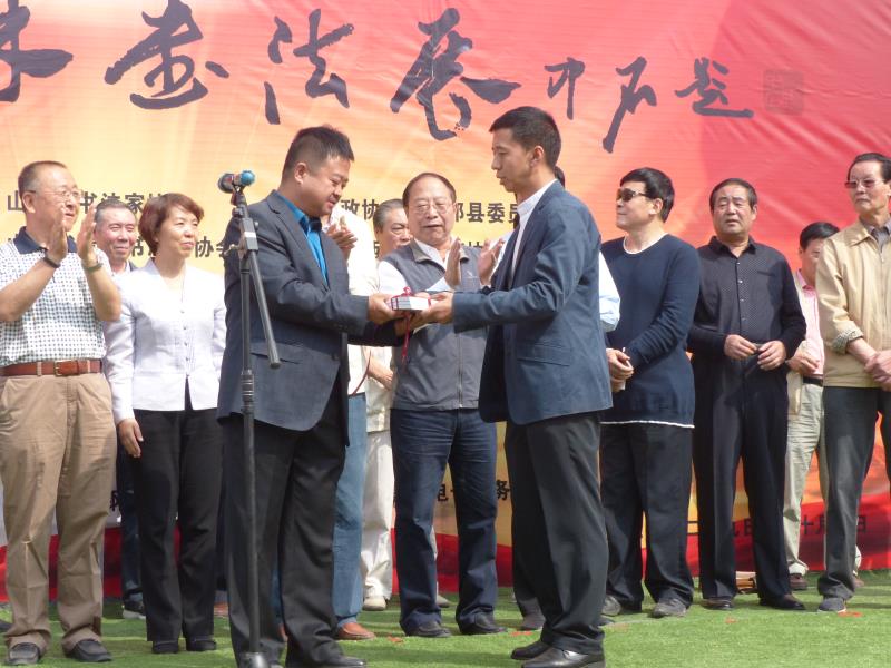 9月29日,由山西省書法家協(xié)會(huì)、政協(xié)山西省祁縣委員會(huì)聯(lián)合主辦,縣政協(xié)教科文衛(wèi)體和學(xué)習(xí)委、山西晉商文化研究所、山西盛大鋼結(jié)構(gòu)工程公司、山西美璃電子商務(wù)公司等14家單位承辦的“喜迎十九大翰墨抒情懷”頡林書法展在祁縣開展。山西省書法家協(xié)會(huì)顧問、大眾書畫院常務(wù)副院長(zhǎng)兼秘書長(zhǎng)郝志遠(yuǎn)宣布書法展開展,縣委副書記李軍榮致辭,縣政協(xié)主席李郁明主持,縣政協(xié)副主席王建剛、申建平及縣政協(xié)部分委員、各界人士代表出席。開展儀式上,頡林先生向山西盛大鋼結(jié)構(gòu)工程有限公司董事長(zhǎng)、山西美璃電子商務(wù)有限公司董事長(zhǎng)賈怡明先生贈(zèng)送了書法作品,以表盛大鋼構(gòu)和美璃電商對(duì)本次書法展的大力支持。
